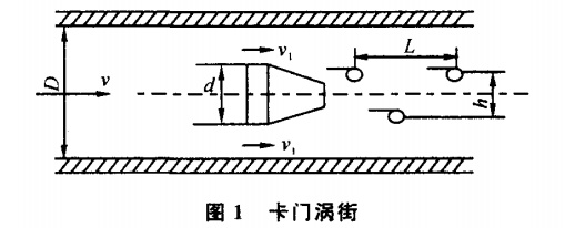 渦街流量計(jì)是根據(jù)卡門旋渦頻率實(shí)現(xiàn)流量測(cè)量的流量計(jì).在具有旋渦發(fā)生體的流場(chǎng)中,當(dāng)兩旋渦列之間的距離h與同列的兩旋渦之間的距離L之比滿足h/L=0.281時(shí),形成卡門渦街如圖1所示.大量實(shí)驗(yàn)證明:在一-定的雷諾數(shù)范圍內(nèi),穩(wěn)定的旋渦發(fā)生頻率ƒ與旋渦發(fā)生體側(cè)流速u與旋渦發(fā)生體的柱寬d有如下確定的關(guān)系:ƒ=(u/d)St.式中St為斯特勞哈爾數(shù)(無綱量),對(duì)于一定形狀的旋渦發(fā)生體,在一-定的雷諾數(shù)范圍內(nèi)是一個(gè)常數(shù).由于流體流量與其流速之間存在線性關(guān)系,所以通過測(cè)量旋渦發(fā)生引起的流體振動(dòng)頻率,即可實(shí)現(xiàn)對(duì)流體流量的測(cè)量.