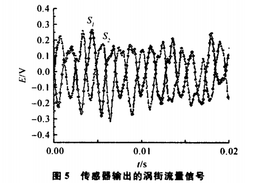 但是,渦街流量計(jì)存在兩大缺陷:(1)小流量信噪比低;(2)抗干擾性能差.其中抗干擾性能是衡量一臺(tái)工業(yè)渦街流量計(jì)應(yīng)用好壞的一個(gè)重要指標(biāo).目前很多工業(yè)用戶之所以對(duì)渦街流量計(jì)的應(yīng)用失去信心,是因?yàn)樵趯?shí)際應(yīng)用中,工業(yè)振動(dòng)是普遍存在的;而一般的工業(yè)振動(dòng)頻率大都在幾赫茲到幾千赫茲之間,渦街流量計(jì)的旋渦分離頻率正好落在這個(gè)范圍之內(nèi)..